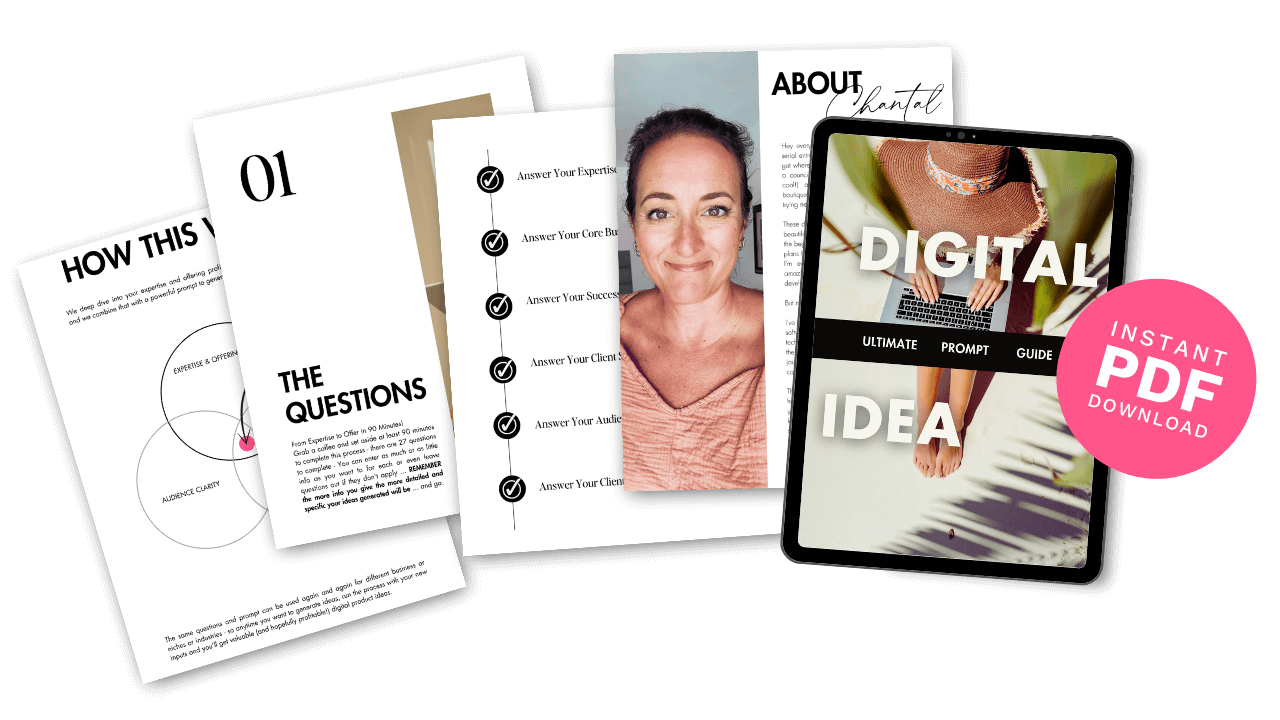 "The content and the process of getting the digital product ideas was faultless! It's really good Chantal! The ideas were really good and I’m excited to get on with trying them out on my audience."