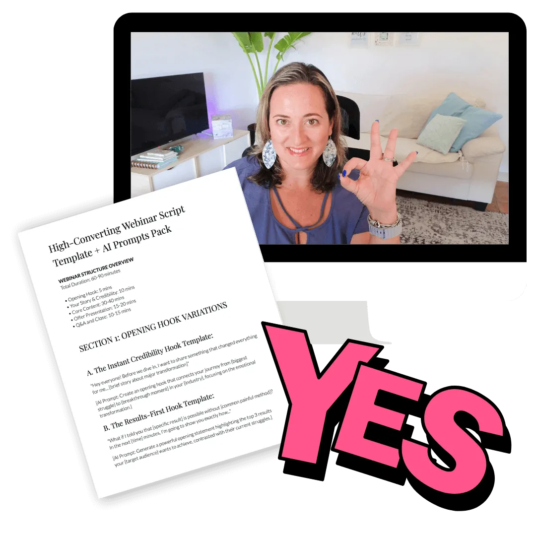 Broken down into 5 winning sections from Opening Hook through to the Q&A and Close. Each section has several possible templates with example and AI Prompt to use to mix and match and create your perfect and unique High-Converting Webinar Script.