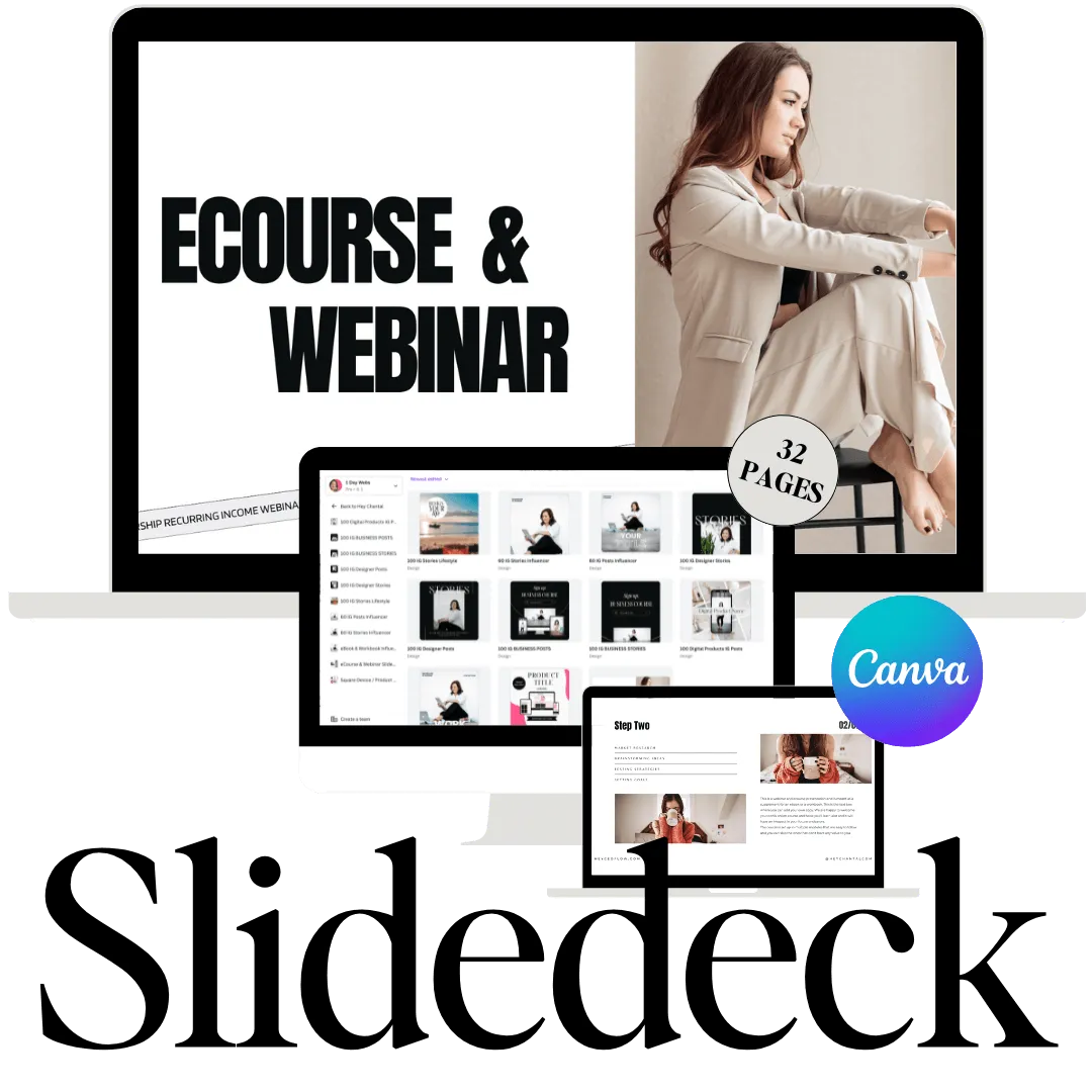This Canva templates will save you countless hours of design work and ensure your brand always looks polished and professional. You'll be able to consistently create eye-catching, on-brand webinar slide decks that attracts and engages your ideal clients.